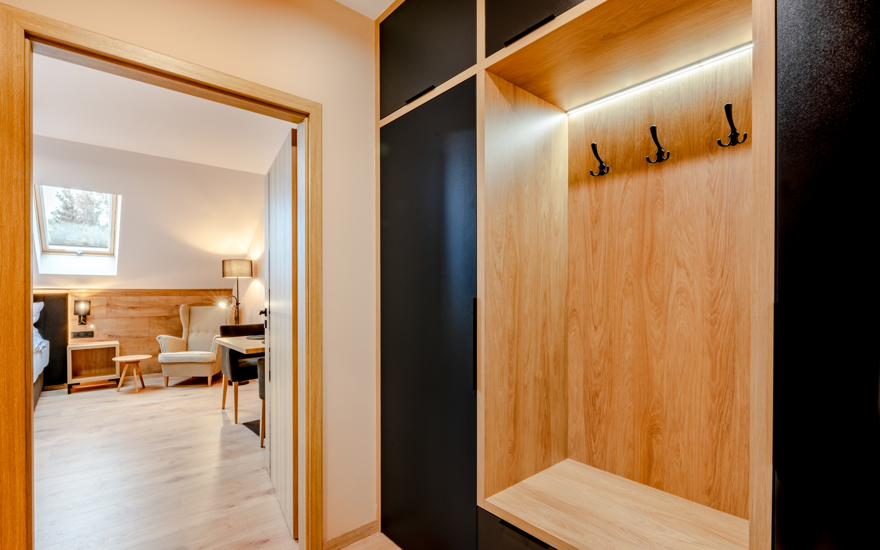 Pokoje s pohodlnou manželskou postelí či oddělenými lůžky. Prostor pro vaši relaxaci s pohodlným křeslem a odkládacím stolkem. Moderní koupelna se sprchovým koutem a plně vybavenou kuchyňkou včetně jídelního stolu.